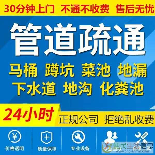 24小时上门服务。10多年经验,工具齐全,专治各种疑难杂症,不通不收费。童叟无欺,诚信经营,欢迎新老客户长期合作。 一、管道疏通: 1、市政管道:备有大型机械,疏通各种主管道、市政管道疏通及其他大型下...
